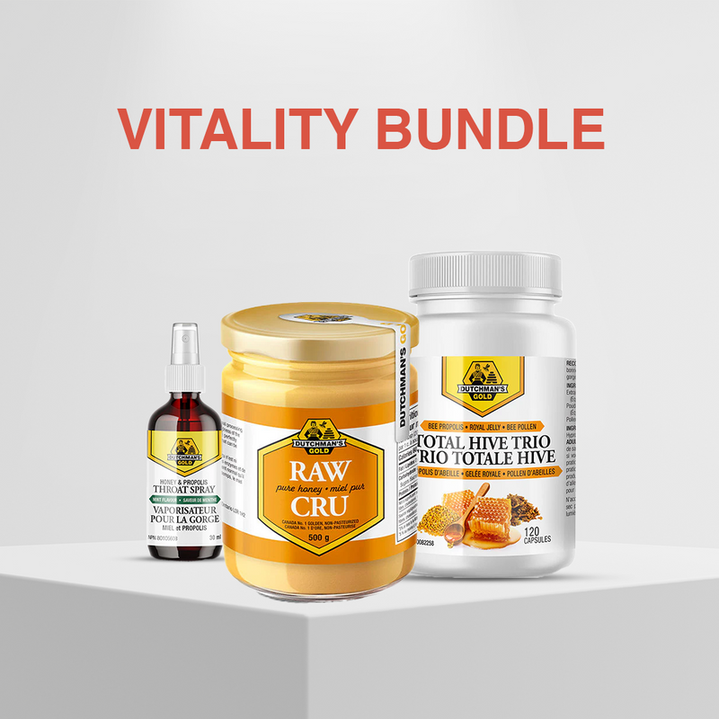 This bundle combines raw, nutrient-rich honey with our refreshing Honey & Mint Throat Spray and the complete Total Hive Trio, giving you a comprehensive boost of hive-powered nutrition at a special bundle price.